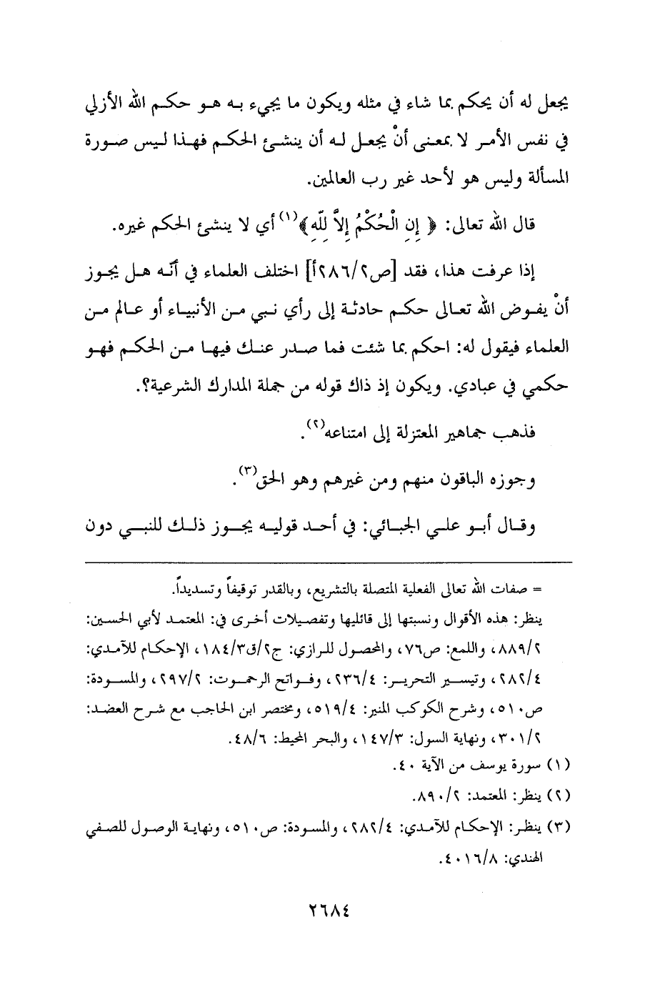 يجعل له أن يحكم بما شاء في مثله ويكون ما يجيء به هو حكم الله الأزلي في نفس الأمر لا بمعنى أنْ يجعل له أن ينشئ الحكم فهذا ليس صورة المسألة وليس هو لأحد غير رب العالمين.