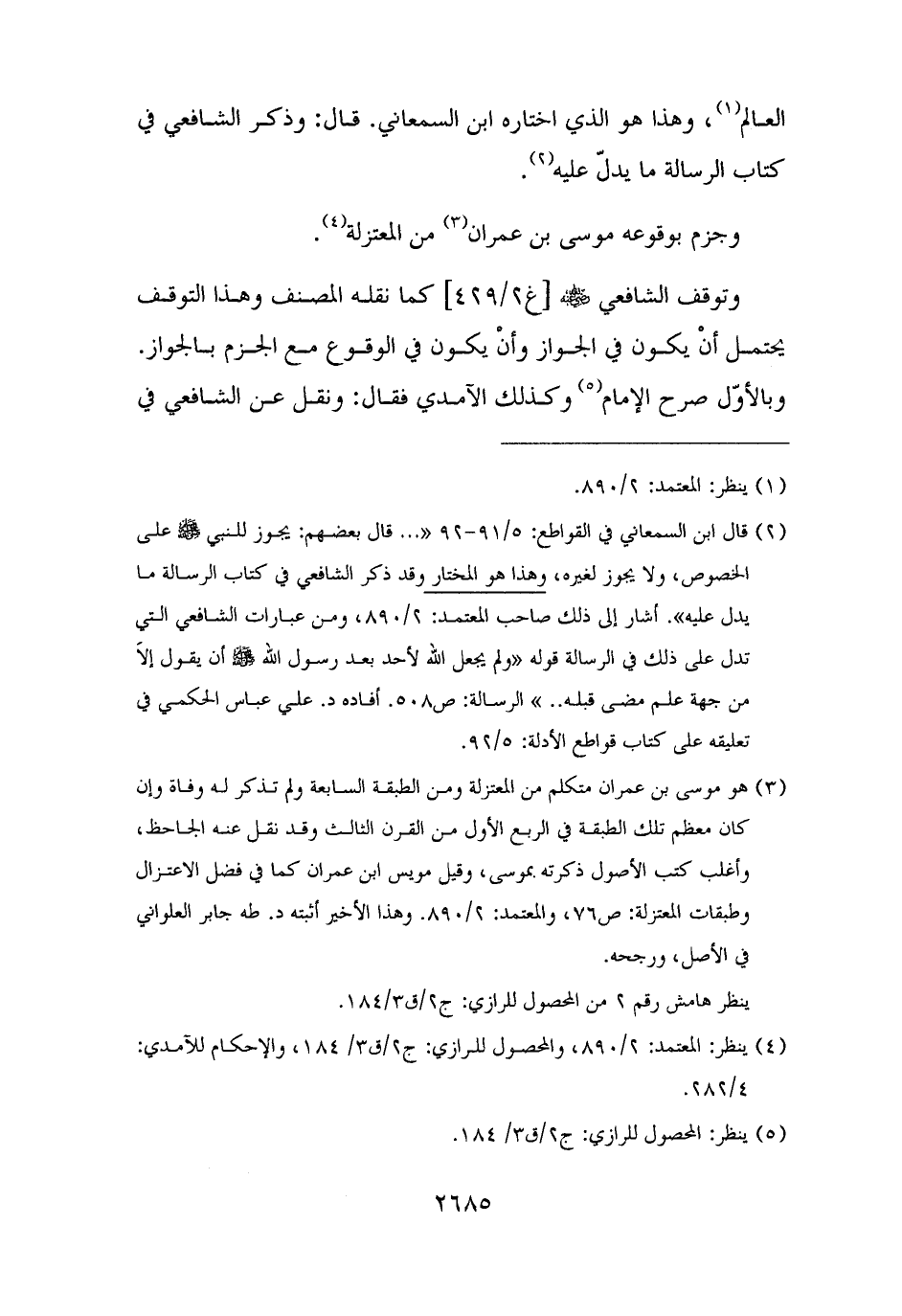 (¬٥) ينظر: المحصول للرازي: ج ٢/ ق ٣/ ١٨٤.