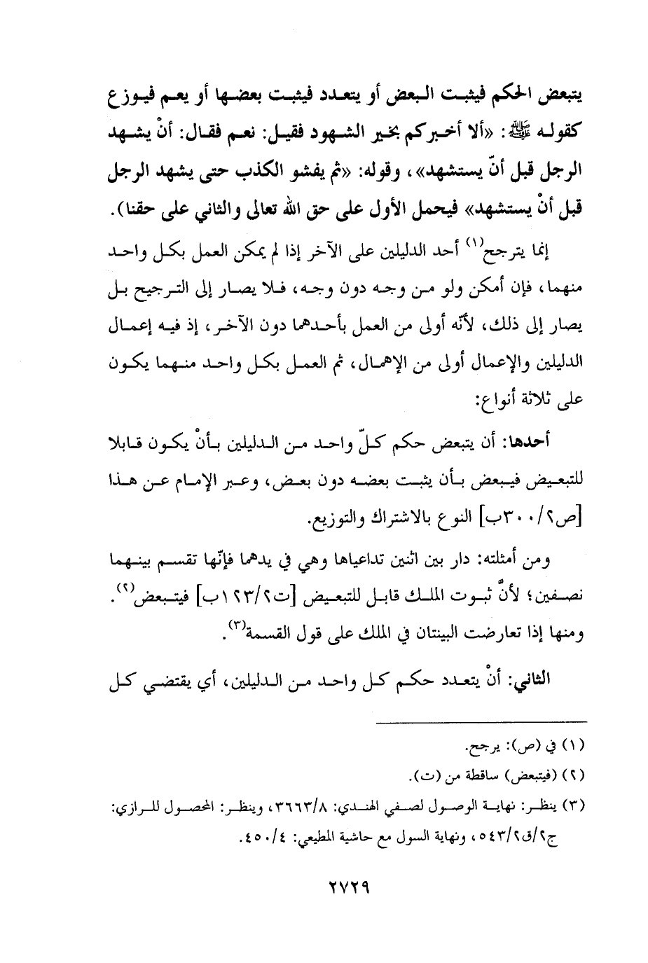 (¬٣) ينظر: نهاية الوصول لصفي الهندي: ٨/ ٣٦٦٣، وينظر: المحصول للرازي: ج ٢/ ق ٢/ ٥٤٣، ونهاية السول مع حاشية المطيعي: ٤/ ٤٥٠.