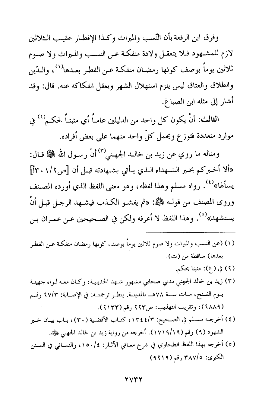 (¬٤) أخرجه مسلم في الصحيح: ٣/ ١٣٤٤، كتاب الأقضية (٣٠)، باب بيان خير الشهود (٩) رقم (١٩/ ١٧١٩). أخرجه من رواية زيد بن خالد الجهني - رضي الله عنه -.