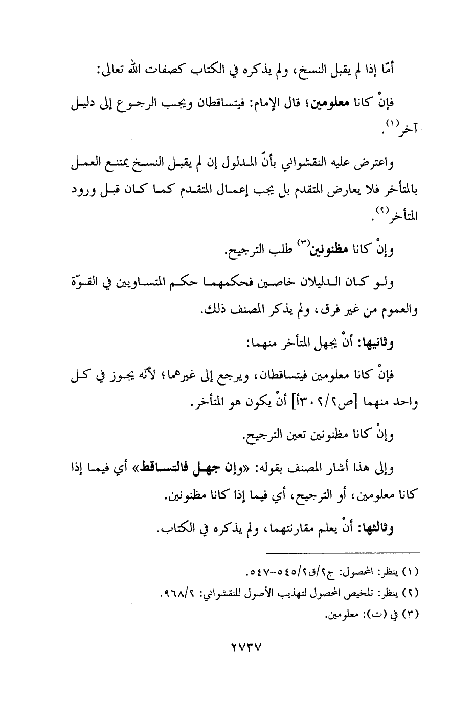 (¬٢) ينظر: تلخيص المحصول لتهذيب الأصول للنقشواني: ٢/ ٩٦٨.