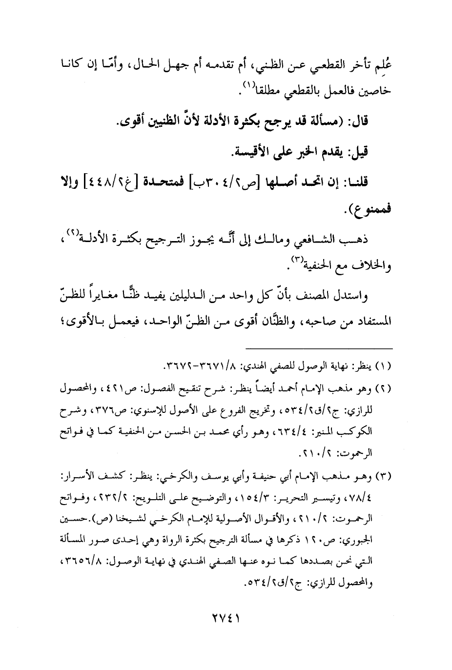 (¬١) ينظر: نهاية الوصول للصفي الهندي: ٨/ ٣٦٧١ - ٣٦٧٢.