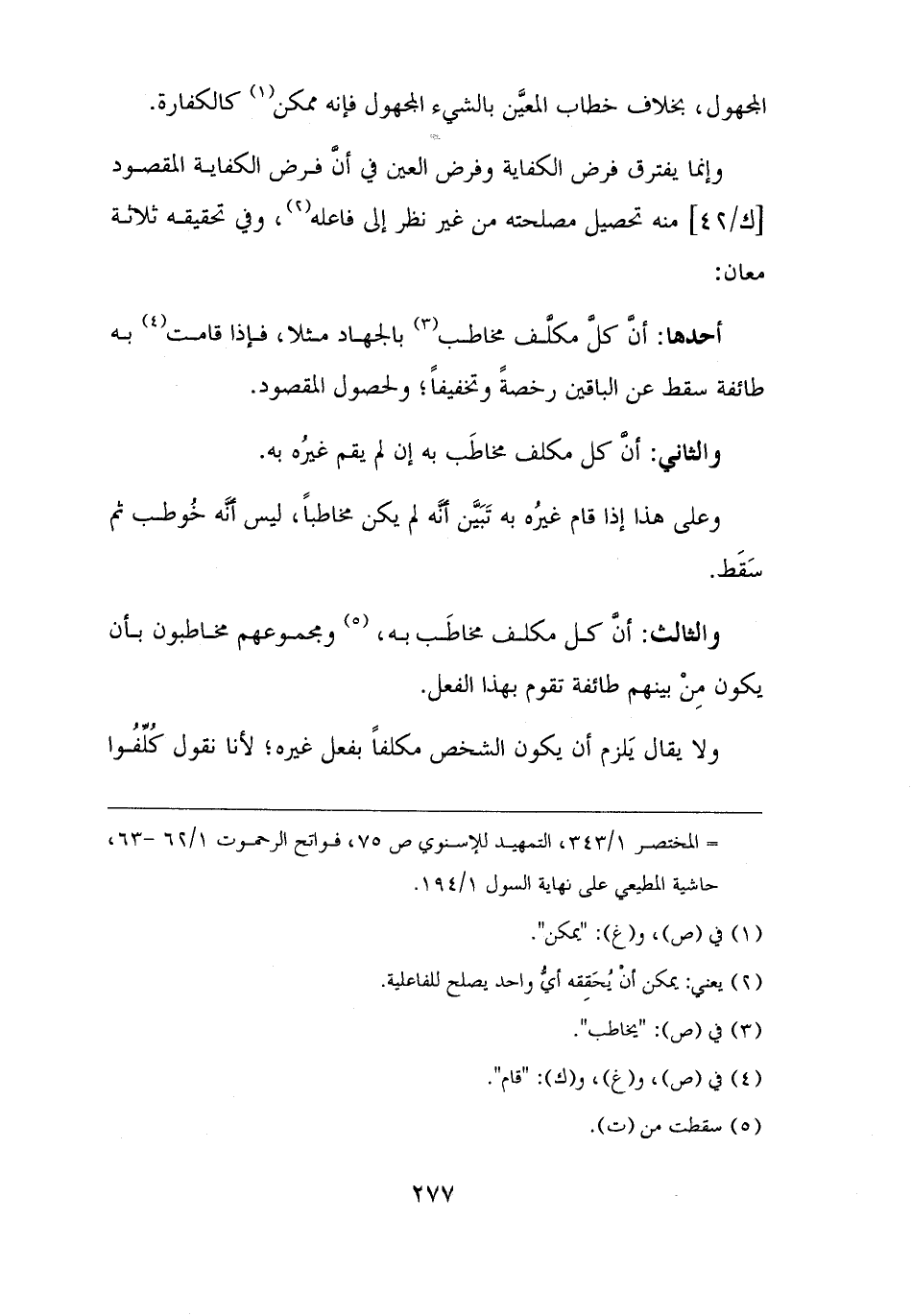 = المختصر ١/ ٣٤٣، التمهيد للإسنوي ص ٧٥، فواتح الرحموت ١/ ٦٢ - ٦٣، حاشية المطيعي على نهاية السول ١/ ١٩٤.
