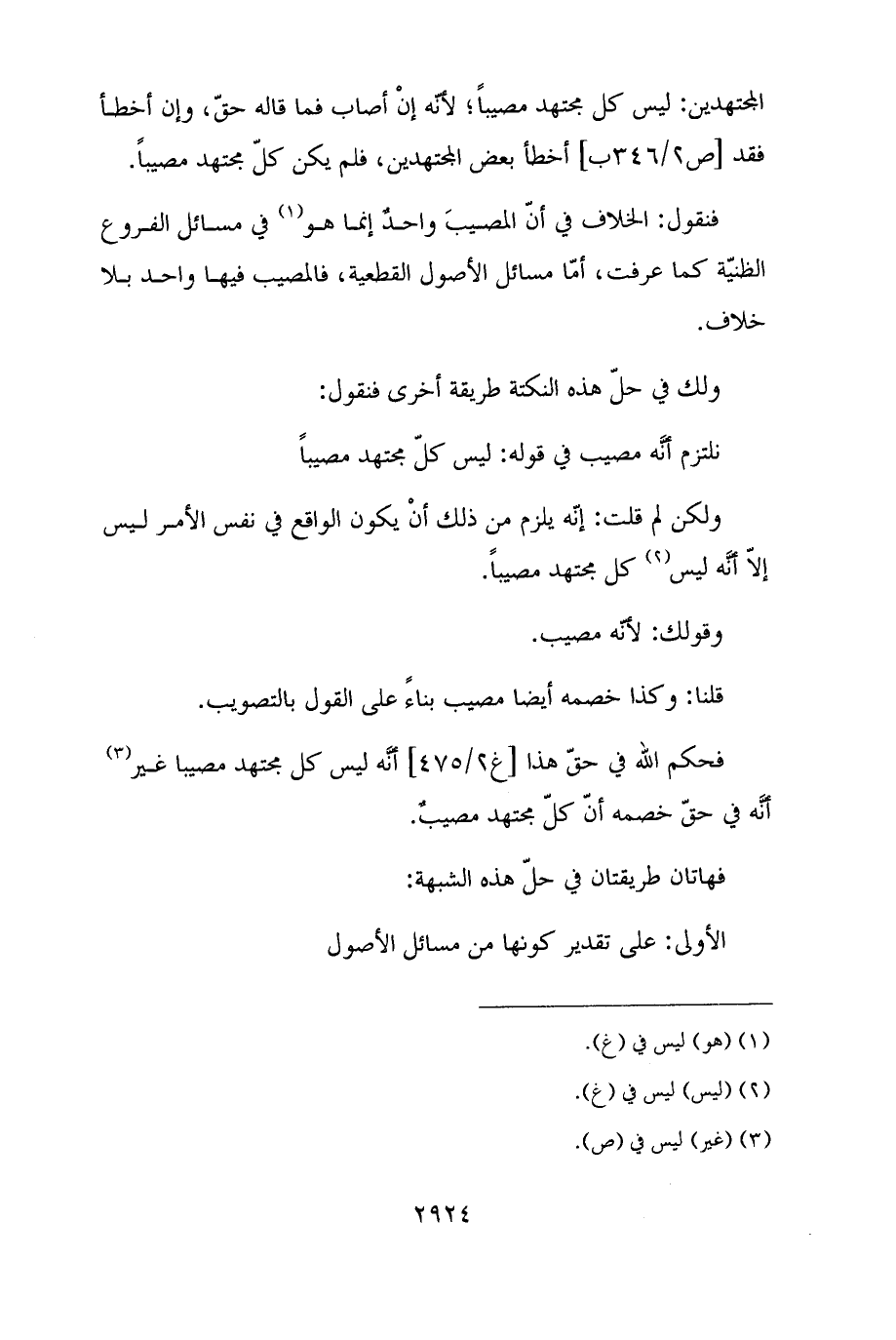 المجتهدين: ليس كل مجتهد مصيبًا؛ لأنّه إنْ أصاب فما قاله حقّ، وإن أخطأ فقد أخطأ بعض المجتهدين، فلم يكن كلّ مجتهد مصيبًا.
