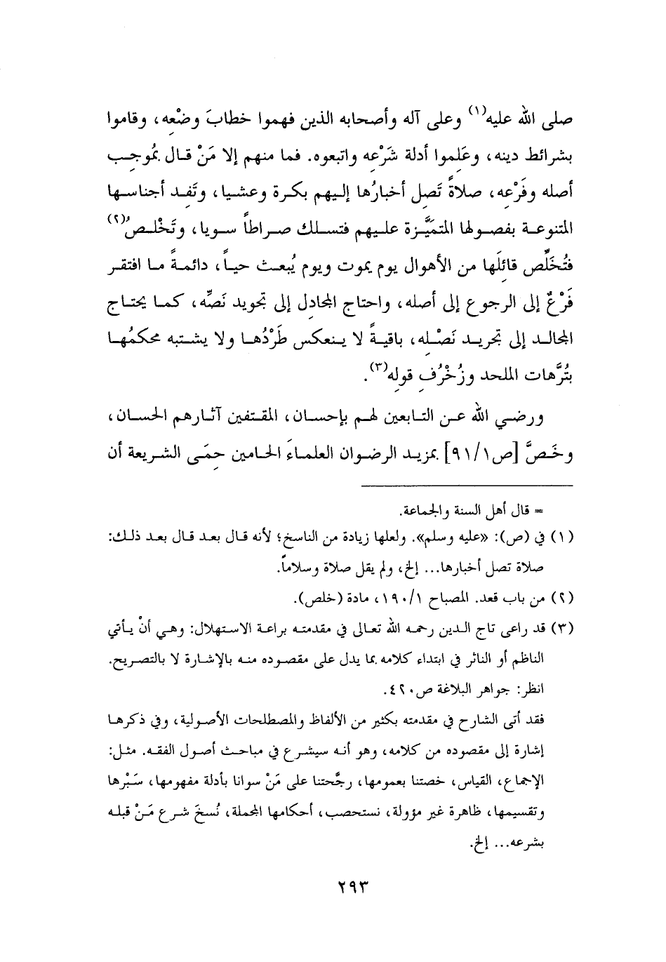 صلى الله عليه (¬١) وعلى آله وأصحابه الذين فهموا خطابَ وضْعِه، وقاموا بشرائط دينه، وعَلِموا أدلة شَرْعِه واتبعوه. فما منهم إلا مَنْ قال بمُوجِب أصله وفَرْعِه، صلاةً تَصِل أخبارُها إليهم بكرة وعشيا، وتَفِد أجناسها المتنوعة بفصولها المتمَيَّزة عليهم فتسلك صراطًا سويا، وتَخْلصُ (¬٢) فتُخَلِّص قائِلَها من الأهوال يوم يموت ويوم يُبعث حيًا، دائمةً ما افتقر فَرْعٌ إلى الرجوع إلى أصله، واحتاج المجادِل إلى تجويد نَصِّه، كما يحتاج المجالد إلى تجريد نَصْلِه، باقيةً لا ينعكسَ طَرْدُها ولا يشتبه محكمُها بتُرَّهات الملحد وزُخْرُفِ قولِه (¬٣).