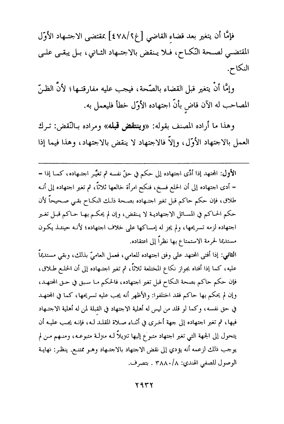 فإمَّا أن يتغير بعد قضاءِ القاضي بمقتضى الاجتهاد الأوّل المقتضي لصحة النّكاح، فلا ينقض بالاجتهاد الثاني، بل يبقى على النكاح.