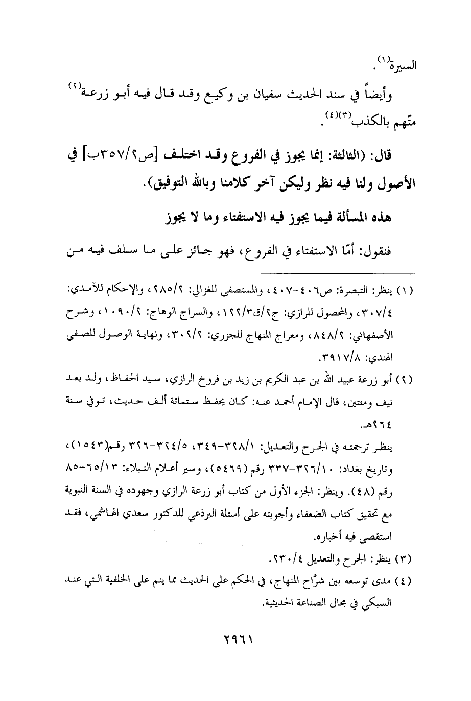 (¬١) ينظر: التبصرة: ص ٤٠٦ - ٤٠٧، والمستصفى للغزالي: ٢/ ٢٨٥، والإحكام للآمدي: ٤/ ٣٠٧، والمحصول للرازي: ج ٢/ ق ٣/ ١٢٢، والسراج الوهاج: ٢/ ١٠٩٠، وشرح الأصفهاني: ٢/ ٨٤٨، ومعراج المنهاج للجزري: ٢/ ٣٠٢، ونهاية الوصول للصفي الهندي: ٨/ ٣٩١٧.