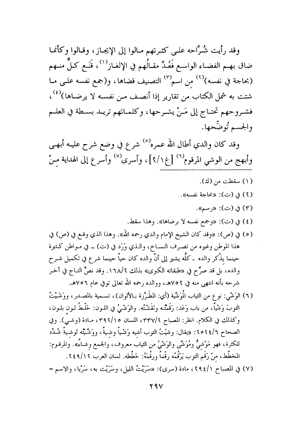 (¬٥) في (ص): "وقد كان الشيخ الإمام والدي رحمه الله". وهذا الذي وقع في (ص) في هذا الموطن وغيره من تصرف النساخ، والذي وَرَد في (ت) - في مواطن كثيرة حينما يذْكر والده - كلُّه يشير إلى أنَّ والده كان حيًا حينما شرع في تكميل شرح والده، بل قد صرَّح في "طبقاته الكبرى" بذلك ٢/ ١٦٨. وقد نصَّ التاج في آخر شرحه بأنه انتهى منه في ٧٥٢ هـ، ووالده رحمه الله تعالى توفي عام ٧٥٦ هـ.