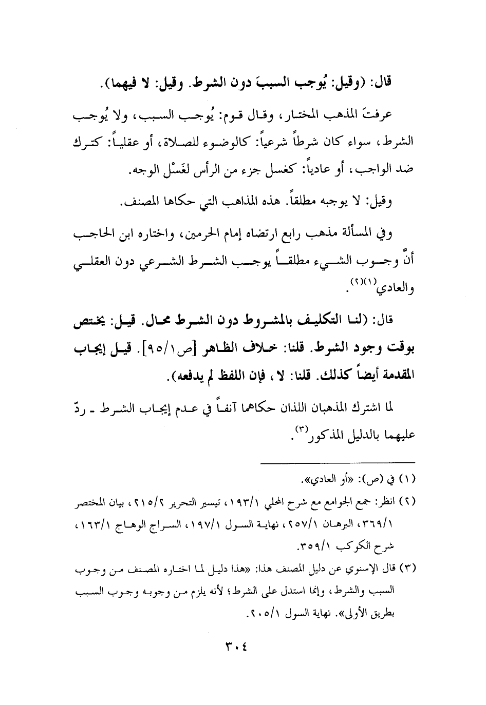 (¬٣) قال الإسنوي عن دليل المصنف هذا: "هذا دليل لما اختاره المصنف من وجوب السبب والشرط، وإنما استدل على الشرط؛ لأنه يلزم من وجوبه وجوب السبب بطريق الأولى". نهاية السول ١/ ٢٠٥.