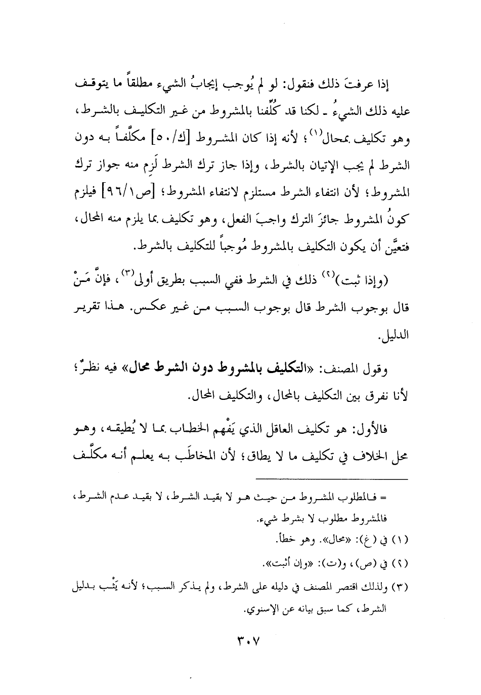 وقول المصنف: "التكليف بالمشروط دون الشرط محال" فيه نظرٌ؛ لأنا نفرق بين التكليف بالمحال، والتكليف المحال.