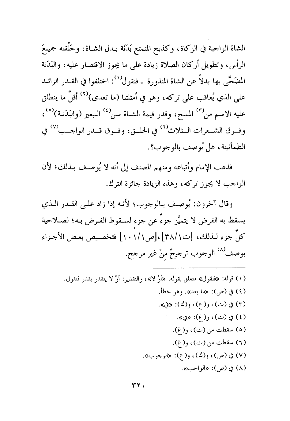 الشاة الواجبة في الزكاة، وكذبح المتمتع بَدَنَة بدل الشاة، وحَلْقه جميعَ الرأس، وتطويل أركان الصلاة زيادة على ما يجوز الاقتصار عليه، والبَدَنة المضَحَّى بها بدلًا عن الشاة المنذورة - فنقول (¬١): اختلفوا في القدر الزائد على الذي يُعاقب على تركه، وهو في أمثلتنا (ما تعدى) (¬٢) أقلَّ ما ينطلق عليه الاسم من (¬٣) المسح، وقدر قيمة الشاة من (¬٤) البعير (والبَدَنة) (¬٥)، وفوق الشعرات الثلاث (¬٦) في الحلق، وفوق قدر الواجب (¬٧) في الطمأنينة، هل يُوصف بالوجوب؟ .