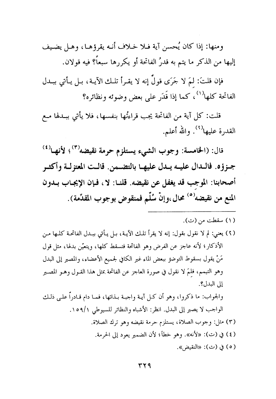 والجواب: ما ذكروا، وهو أن كل آية واجبة بذاتها، فما دام قادرًا على ذلك الواجب لا يصير إلى البدل. انظر: الأشباه والنظائر للسيوطي ١/ ١٥٩.