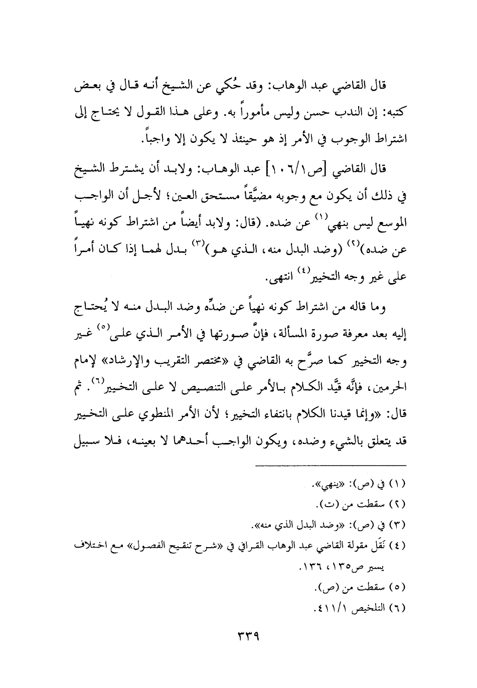 (¬٤) نَقَل مقولة القاضي عبد الوهاب القرافي في "شرح تنقيح الفصول" مع اختلاف يسير ص ١٣٥، ١٣٦.
