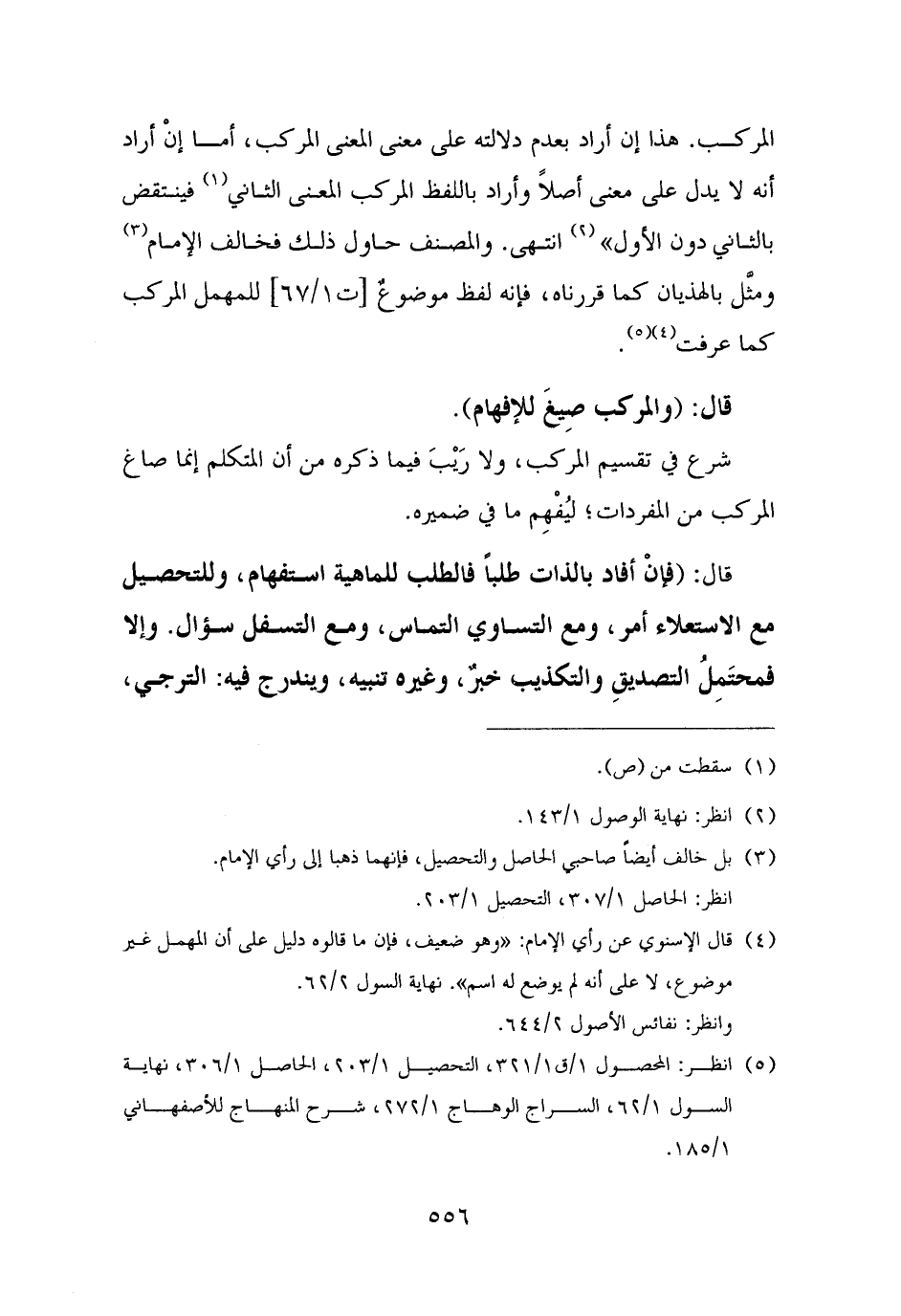 (¬٤) قال الإسنوي عن رأي الإمام: "وهو ضعيف، فإن ما قالوه دليل على أن المهمل غير موضوع، لا على أنه لم يوضع له اسم". نهاية السول ٢/ ٦٢.