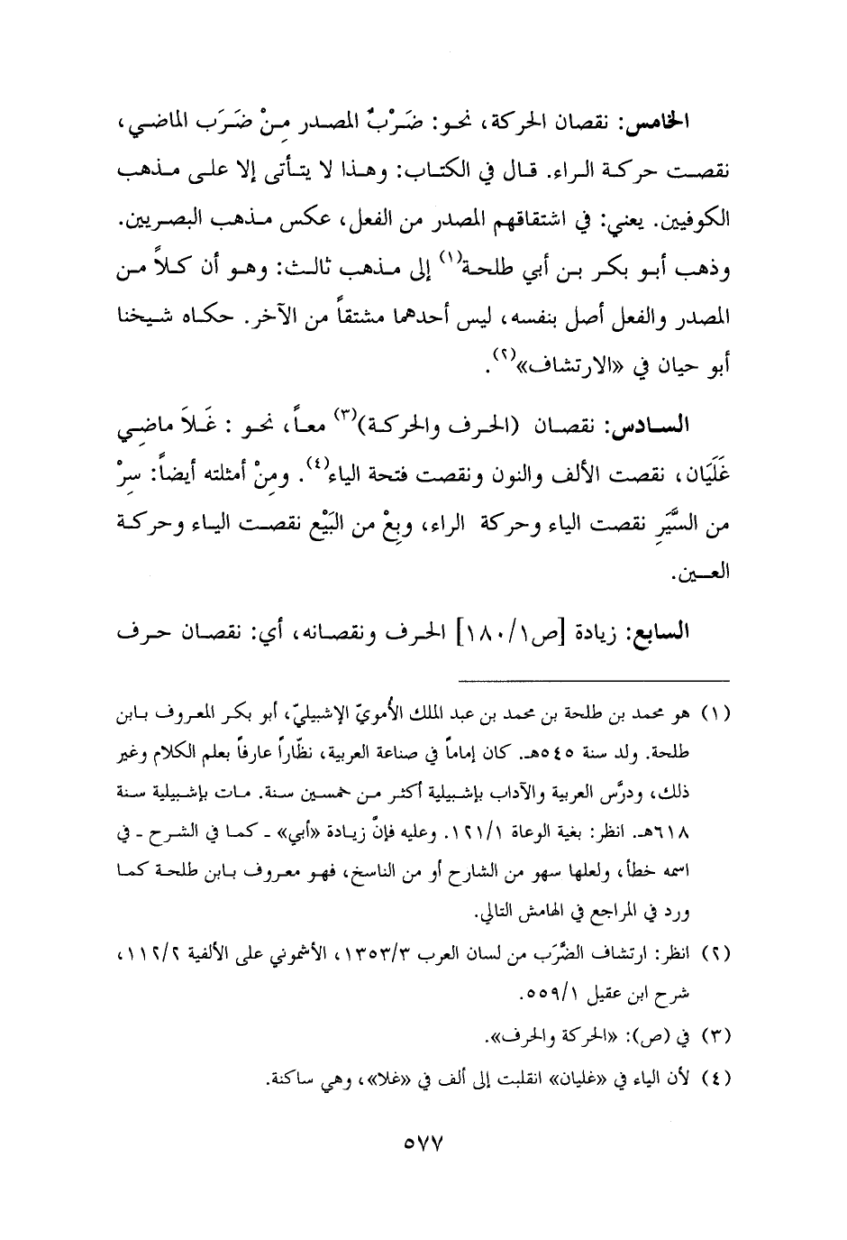 (¬١) هو محمد بن طلحة بن محمد بن عبد الملك الأُمويّ الإشبيليّ، أبو بكر المعروف بابن طلحة. ولد سنة ٥٤٥ هـ. كان إمامًا في صناعة العربية، نظّارًا عارفًا بعلم الكلام وغير ذلك، ودرَّس العربية والآداب بإشبيلية أكثر من خمسين سنة. مات بإشبيلية سنة ٦١٨ هـ. انظر: بغية الوعاة ١/ ١٢١. وعليه فإنَّ زيادة "أبي" - كما في الشرح - في اسمه خطأ، ولعلها سهو من الشارح أو من الناسخ، فهو معروف بابن طلحة كما ورد في المراجع في الهامش التالي.
