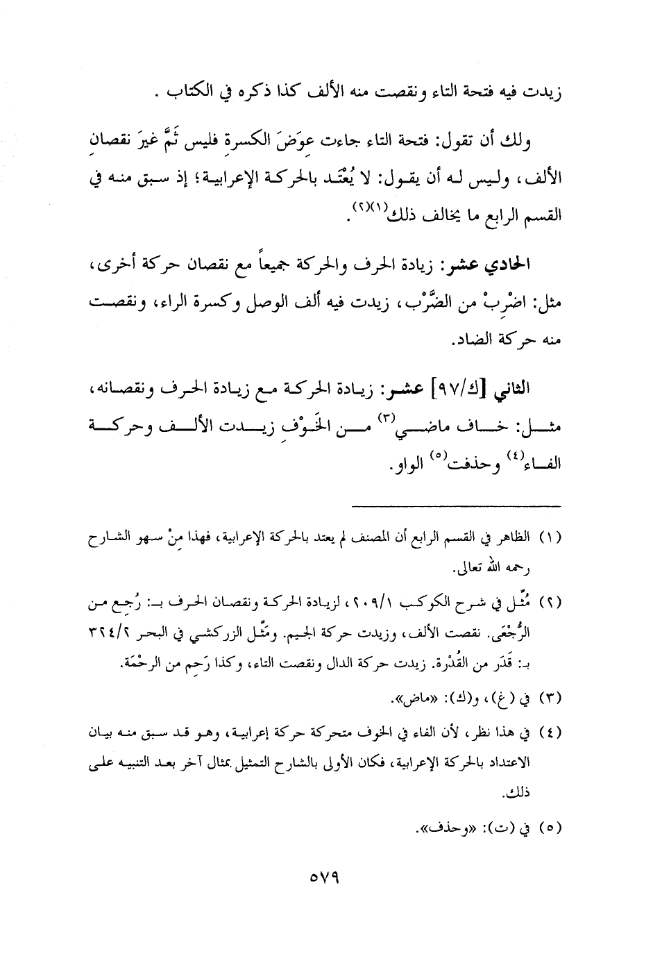 (¬٢) مُثِّل في شرح الكوكب ١/ ٢٠٩، لزيادة الحركة ونقصان الحرف بـ: رُجِع من الرُّجْعَى. نقصت الألف، وزيدت حركة الجيم. ومَثَّل الزركشي في البحر ٢/ ٣٢٤ بـ: قَدَر من القُدْرة. زيدت حركة الدال ونقصت التاء، وكذا رَحِم من الرحْمَة.