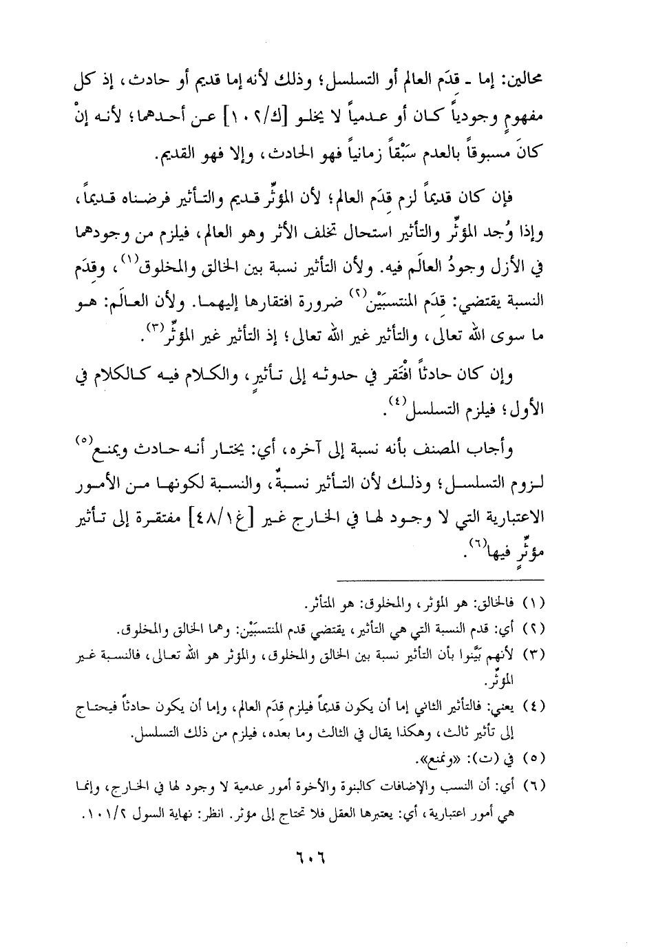 (¬٣) لأنهم بَيَّنوا بأن التأثير نسبة بين الخالق والمخلوق، والمؤثر هو الله تعالى، فالنسبة غير المؤثِّر.