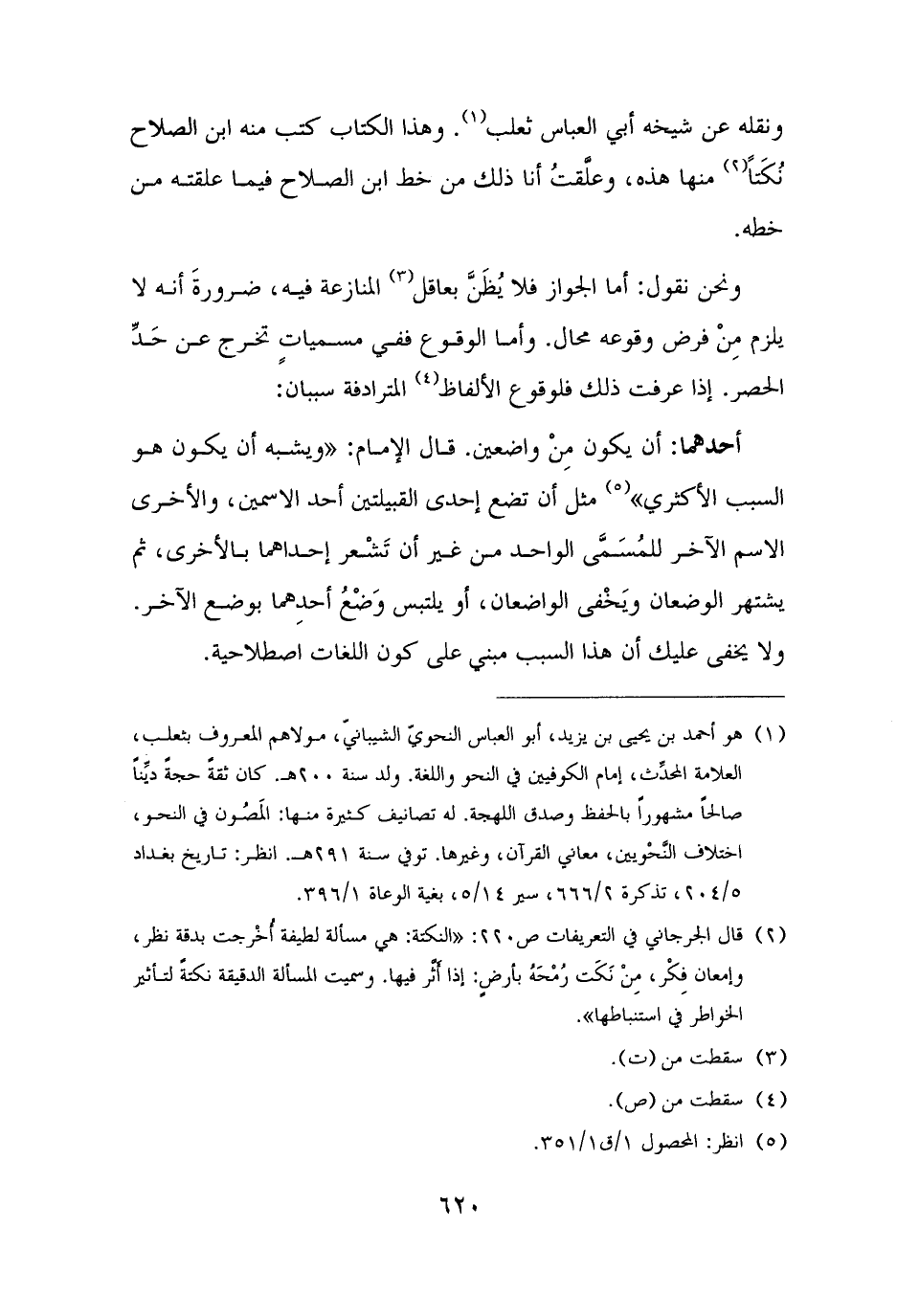 (¬١) هو أحمد بن يحيى بن يزيد، أبو العباس النحويّ الشيبانيّ، مولاهم المعروف بثعلب، العلامة المحدِّث، إمام الكوفيين في النحو واللغة. ولد سنة ٢٠٠ هـ. كان ثقةً حجةً ديِّنًا صالحًا مشهورًا بالحفظ وصدق اللهجة. له تصانيف كثيرة منها: المَصُون في النحو، اختلاف النَّحْويين، معاني القرآن، وغيرها. توفي سنة ٢٩١ هـ. انظر: تاريخ بغداد ٥/ ٢٠٤، تذكرة ٢/ ٦٦٦، سير ١٤/ ٥، بغية الوعاة ١/ ٣٩٦.