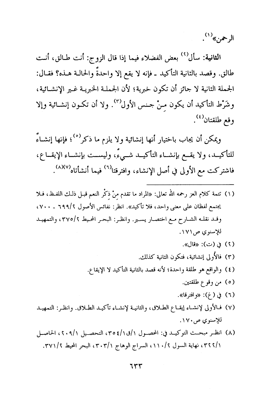 (¬٨) انظر مبحث التوكيد في: المحصول ١/ ق ١/ ٣٥٤، التحصيل ١/ ٢٠٩، الحاصل ١/ ٣٢٢، نهاية السول ٢/ ١١٠، السراج الوهاج ١/ ٣٠٣، البحر المحيط ٢/ ٣٧١.