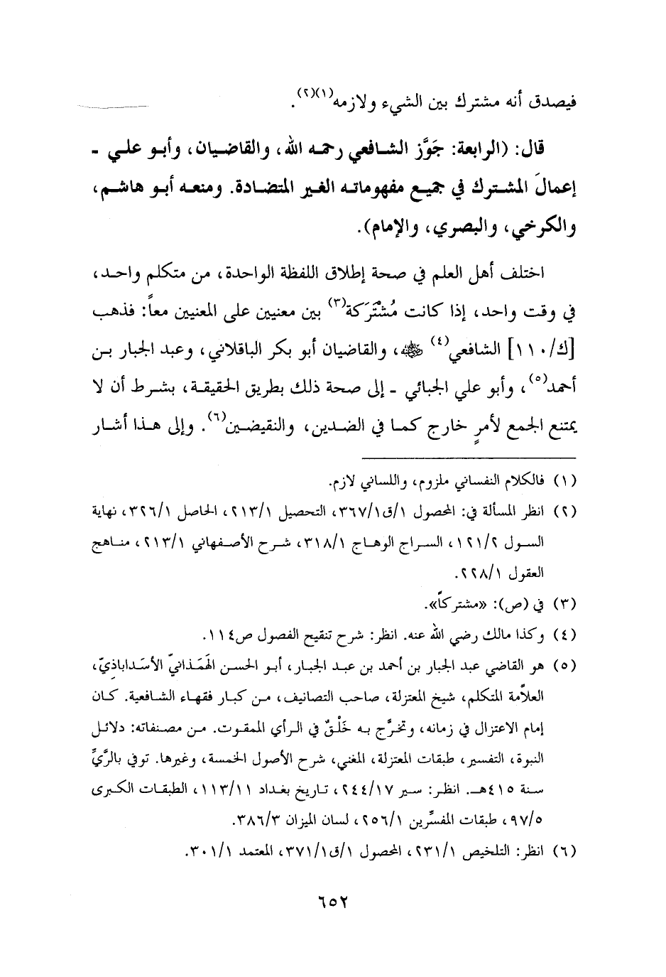 (¬٥) هو القاضي عبد الجبار بن أحمد بن عبد الجبار، أبو الحسن الهَمَذانيّ الأسَداباذِيّ، العلَّامة المتكلم، شيخ المعتزلة، صاحب التصانيف، من كبار فقهاء الشافعية. كان إمام الاعتزال في زمانه، وتخرَّج به خَلْقٌ في الرأي الممقوت. من مصنفاته: دلائل النبوة، التفسير، طبقات المعتزلة، المغني، شرح الأصول الخمسة، وغيرها. توفي بالرَّيِّ سنة ٤١٥ هـ. انظر: سير ١٧/ ٢٤٤، تاريخ بغداد ١١/ ١١٣، الطبقات الكبرى ٥/ ٩٧، طبقات المفسِّرين ١/ ٢٥٦، لسان الميزان ٣/ ٣٨٦.