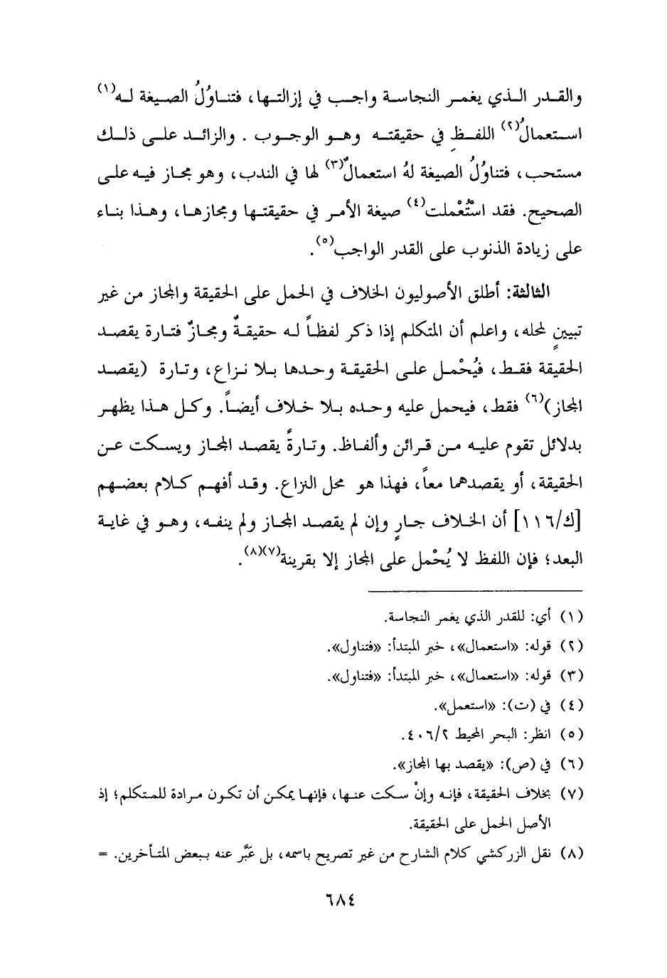 (¬٨) نقل الزركشي كلام الشارح من غير تصريح باسمه، بل عَبَّر عنه ببعض المتأخرين. =