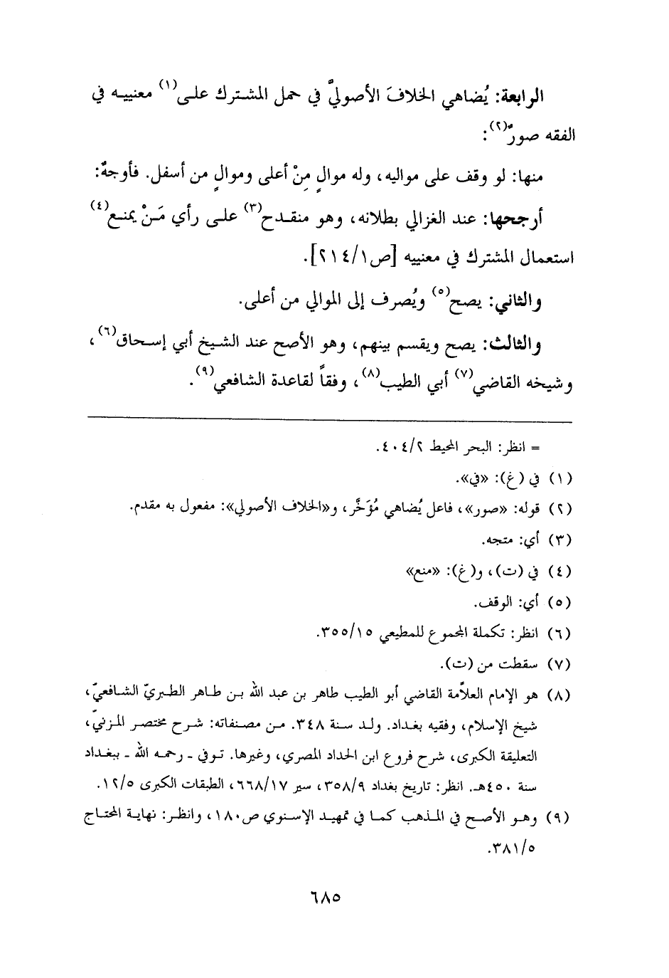 (¬٨) هو الإمام العلّامة القاضي أبو الطيب طاهر بن عبد الله بن طاهر الطبريّ الشافعيّ، شيخ الإسلام، وفقيه بغداد. ولد سنة ٣٤٨. من مصنفاته: شرح مختصر المزنيّ، التعليقة الكبرى، شرح فروع ابن الحداد المصري، وغيرها. توفي - رحمه الله - ببغداد سنة ٤٥٠ هـ. انظر: تاريخ بغداد ٩/ ٣٥٨، سير ١٧/ ٦٦٨، الطبقات الكبرى ٥/ ١٢.