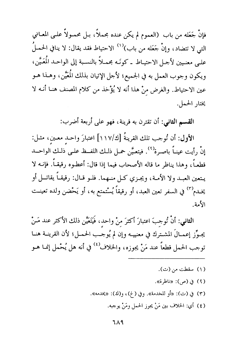 القسم الثاني: أن تقترن به قرينة، فهو على أربعة أضرب: