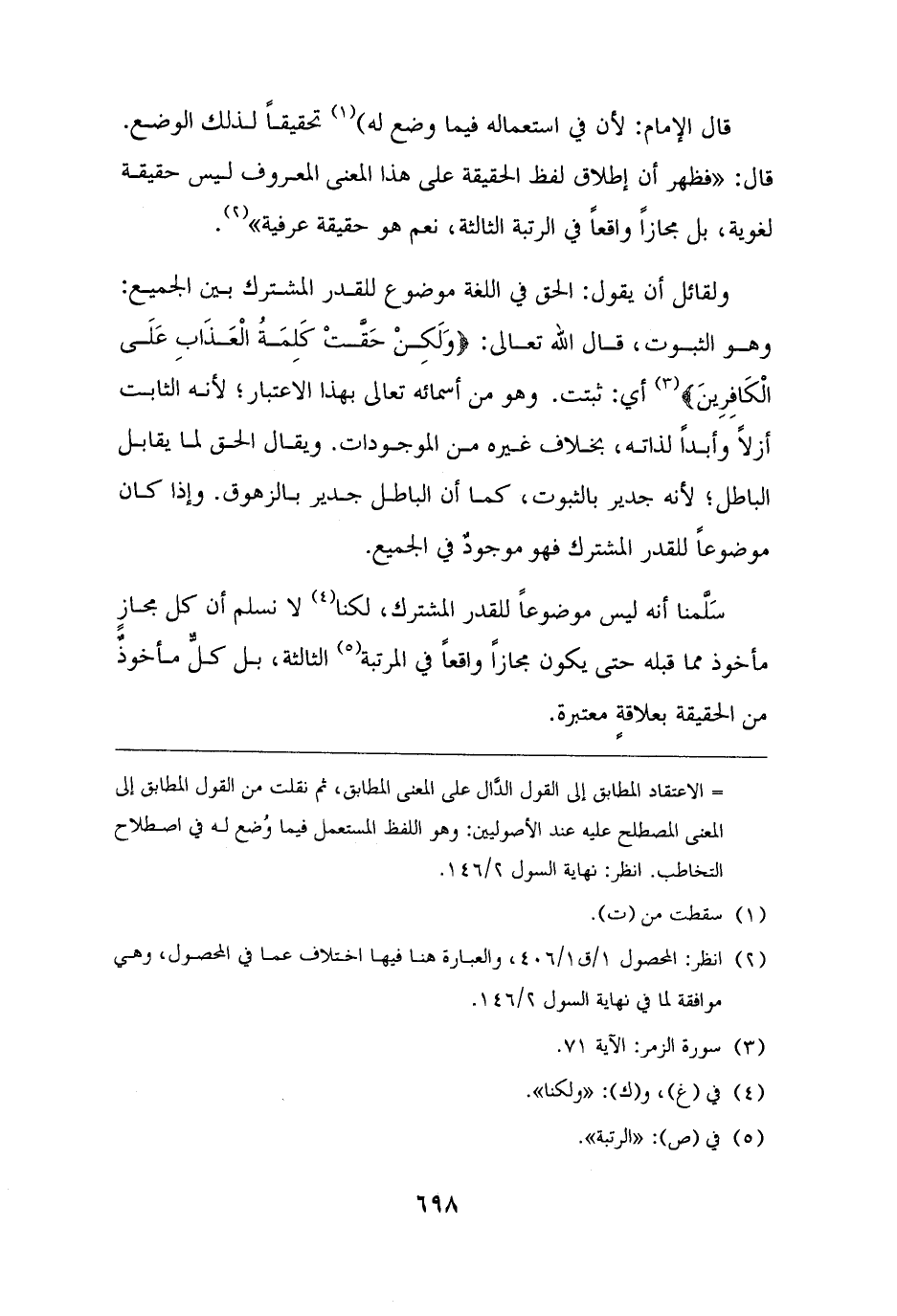 (¬٢) انظر: المحصول ١/ ق ١/ ٤٠٦، والعبارة هنا فيها اختلاف عما في المحصول، وهي موافقة لما في نهاية السول ٢/ ١٤٦.
