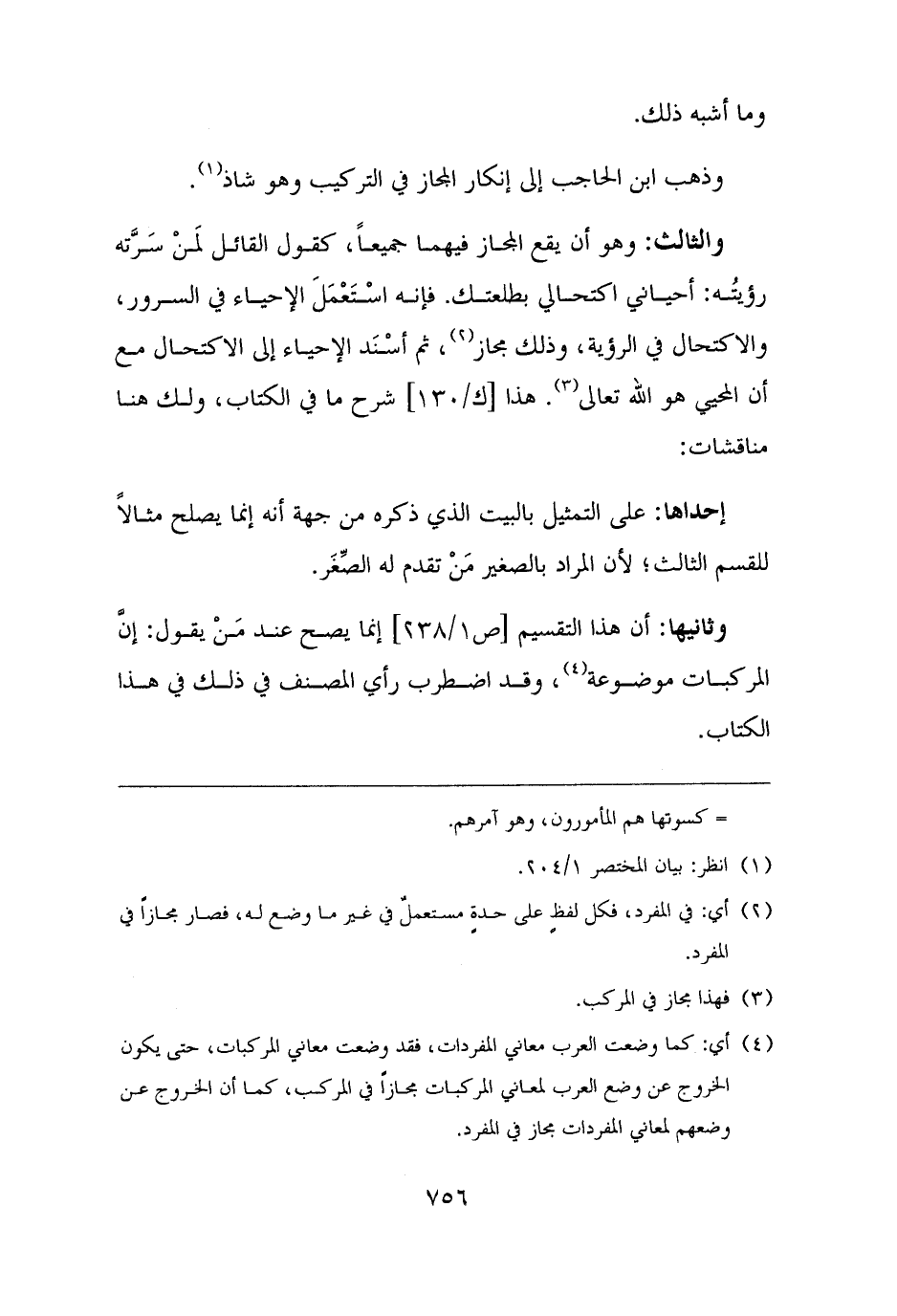 وذهب ابن الحاجب إلى إنكار المجاز في التركيب وهو شاذ (¬١).