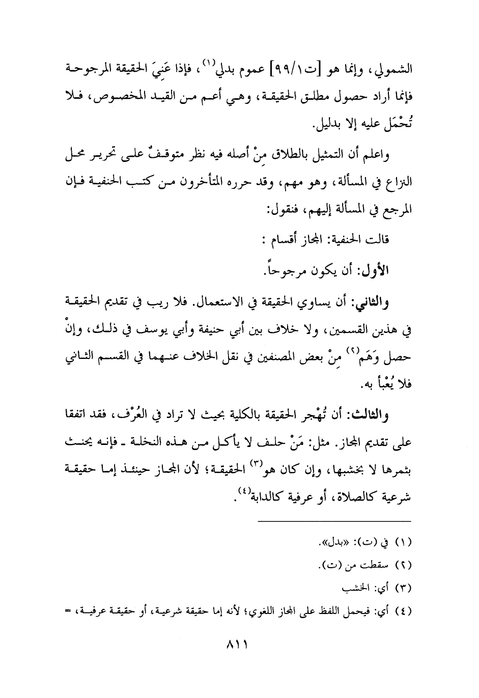 قالت الحنفية: المجاز أقسام: