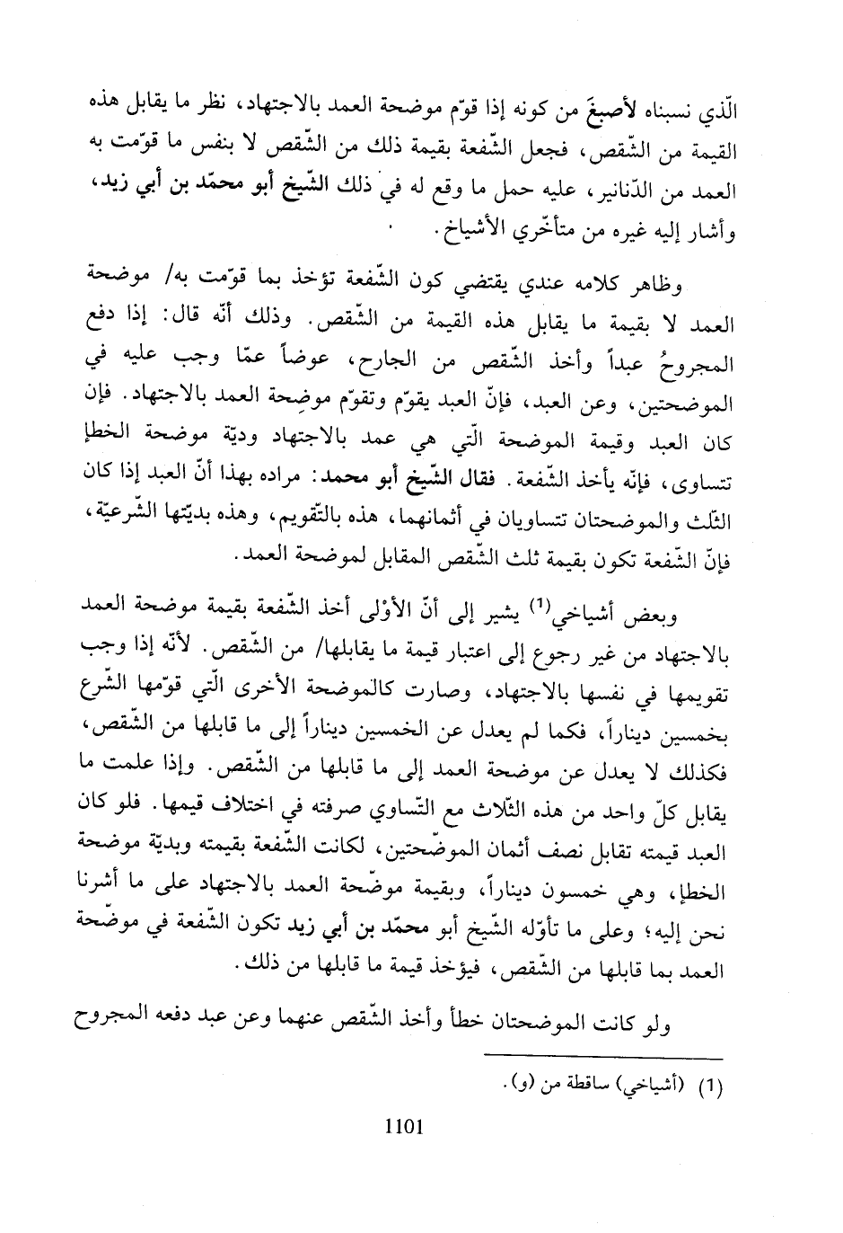 الّذي نسبناه لأصبغَ من كونه إذا قوّم موضحة العمد بالاجتهاد، نظر ما يقابل هذه القيمة من الشّقص، فجعل الشّفعة بقيمة ذلك من الشّقص ل ابن فس ما قوّمت به العمد من الدّنانير، عليه حمل ما وقع له فيْ ذلك الشّيخ أبو محمّد بن أبي زيد، وأشار إليه غيره من متأخّري الأشياخ.
