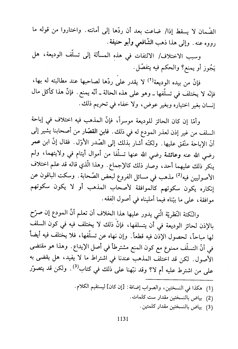 والنّكتة النّظرتة الّتي يدور عليها هذا الخلاف أن تعلم أنّ المودع إن صرّح بالإذن لحائز الوديعة في أن يتسلفها، فإنّ ذلك لا يختلف فيه في كون السلف لها مباحًا، لحصول الإذن فيه قطعًا. وإن نهاه عن تسلفها، فلا يختلف فيه أيضًا في أن التسلّف ممنوع مع كون المنع مشترطًا في أصل الإيداع. وهذا هو مقتضى الأصول. لكن قد اختلف المذهب عندنا في اشتراط ما لا يفيد، هل يقضى به على من اشترط عليه أم لا؟ وقد نبّهنا على ذلك في كتاب (¬3). ولكن قد يتصوّر