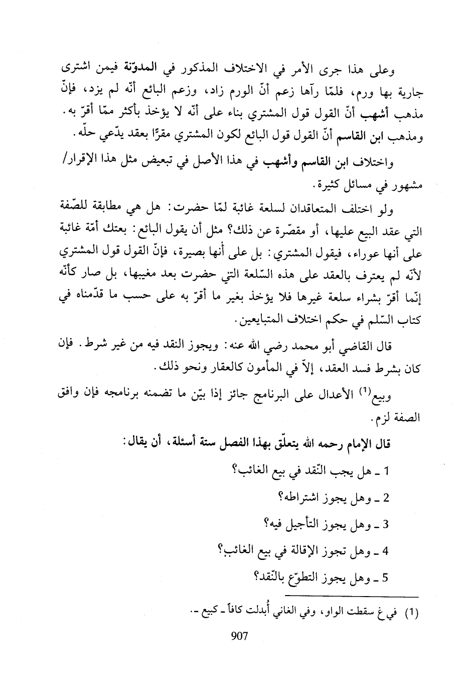 قال الإِمام رحمه الله يتعلق بهذا الفصل ستة أسئلة، أن يقال: