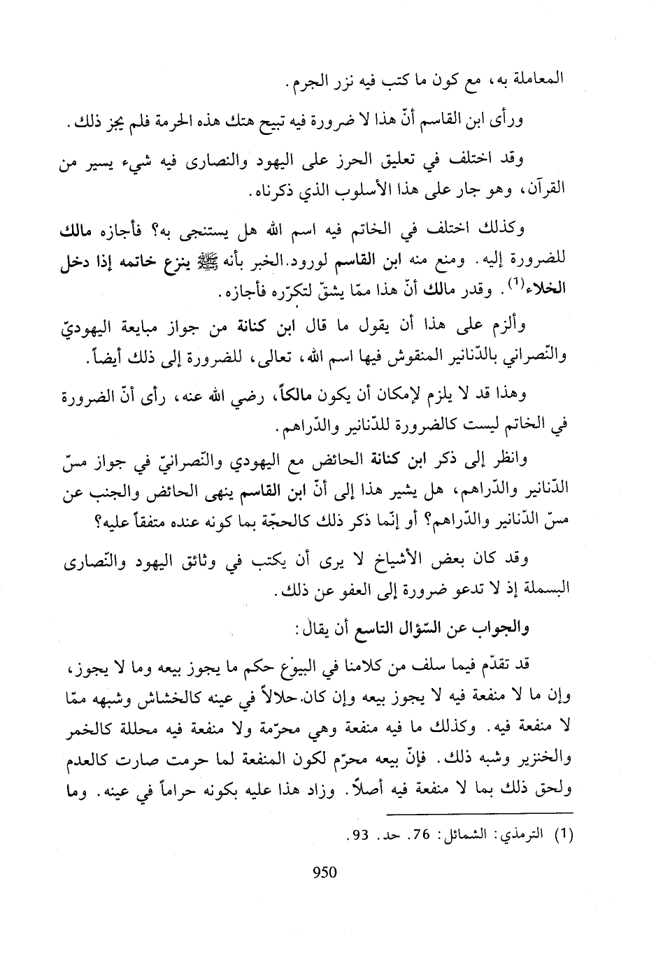 وانظر إلى ذكر ابن كنانة الحائض مع اليهودي والنّصرانيّ في جواز مسّ الدّنانير والدّراهم، هل يشير هذا إلى أنّ ابن القاسم ينهى الحائض والجنب عن مسن الدّنانير والدّراهم؟ أو إنّما ذكر ذلك كالحجّة بما كونه عنده متفقًا عليه؟