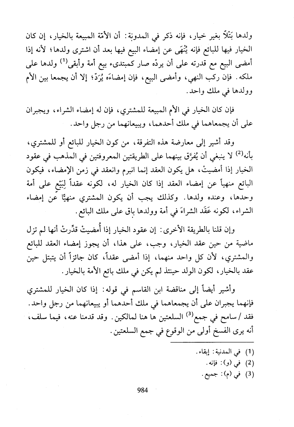 وأشير أيضًا إلى مناقضة ابن القاسم في قوله: إذا كان الخيار للمشتري فإنهما يجبران على أن يجمعاهما في ملك أحدهما أو يبيعانهما من رجل واحد. فقد سامح في جمع (¬3) السلعتين ها هنا لمالكين. وقد قدمنا عنه، فيما سلف، أنه يرى الفسخ أولى من الوقوع في جمع السلعتين.
