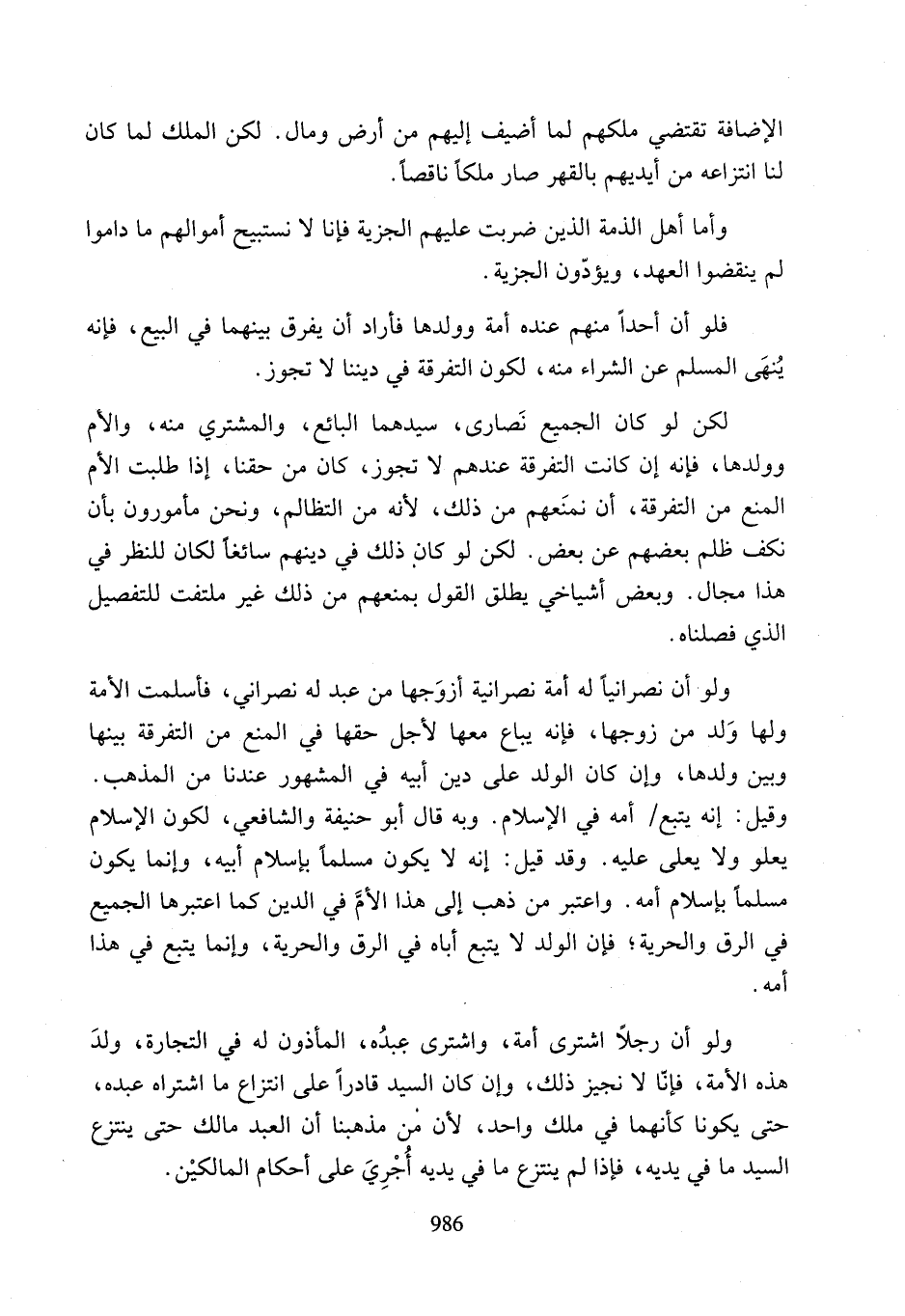 وأما أهل الذمة الذين ضربت عليهم الجزية فإنا لا نستبيح أموالهم ما داموا لم ينقضوا العهد، ويؤدّون الجزية.