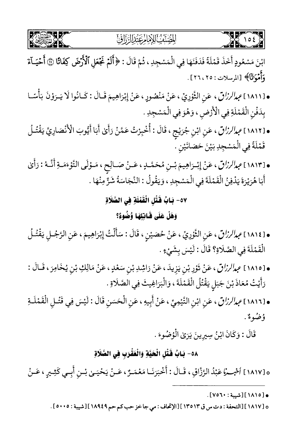 ° [١٨١٧] أخبرنا عَبْدُ الرَّزَّاقِ، قَالَ: أَخْبَرَنَا مَعْمَرٌ، عَنْ يَحْيَى بْنِ أَبِي كَثِيرٍ، عَنْ