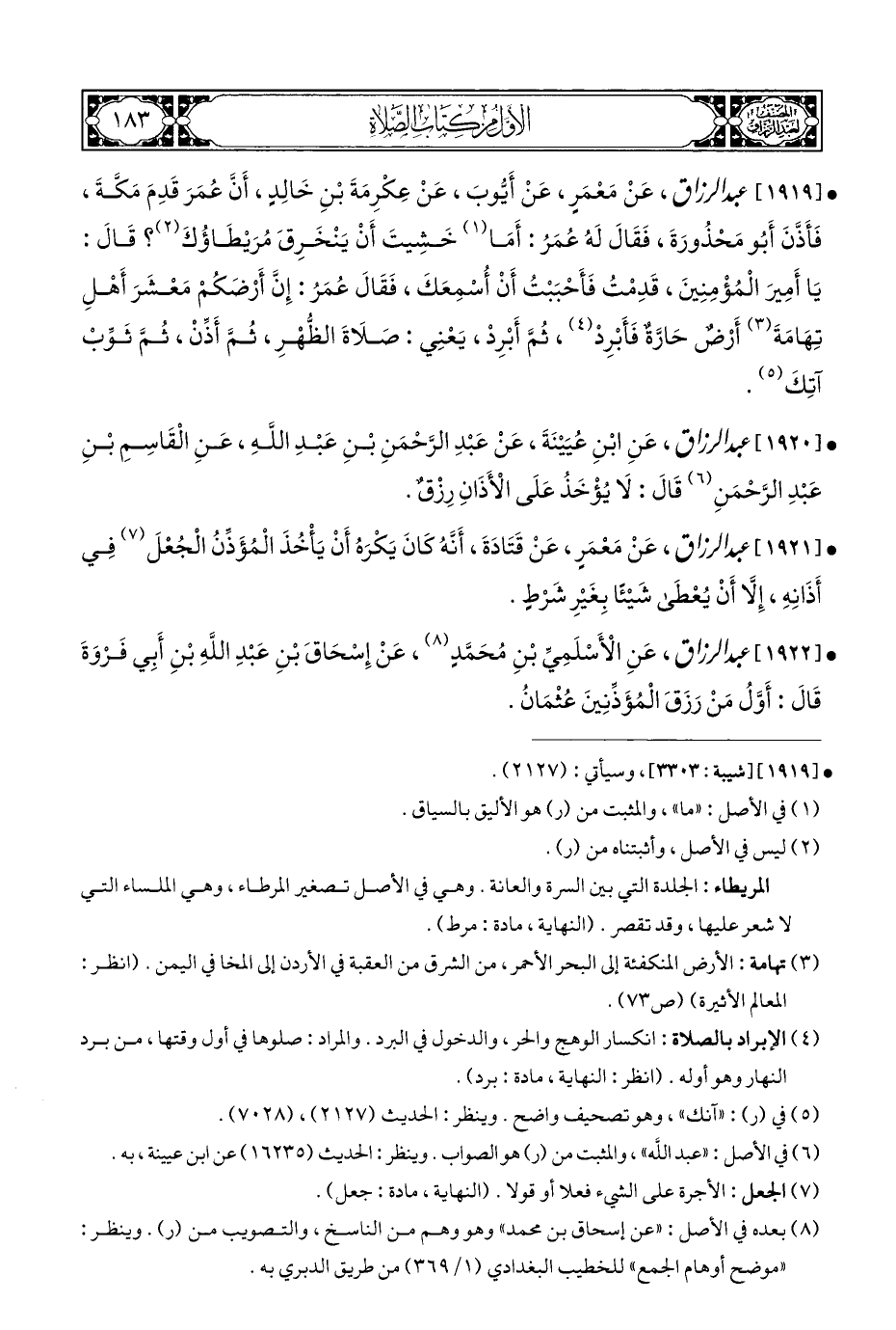 • [١٩٢٢] عبد الرزاق، عَنِ الْأَسْلَمِيِّ بْنِ مُحَمَّدٍ (¬٨)، عَنْ إِسْحَاقَ بْنِ عَبْدِ اللَّهِ بْنِ أَبِي فَرْوَةَ قَالَ أَوَّلُ مَنْ رَزَقَ الْمُؤَذِّنِينَ عُثْمَانُ.