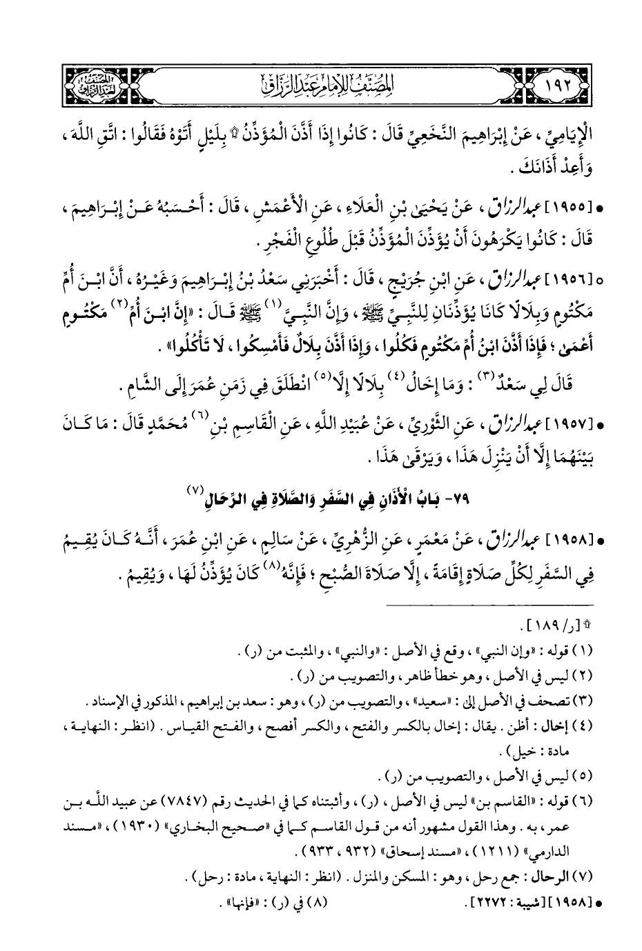 ٧٩ - بَابُ الْأذَانِ فِي السَّفَرِ وَالصَّلَاةِ فِي الرِّحَالِ (¬٧)
