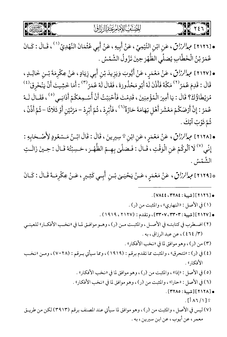 (¬٢) اضطرب في كتابته في الأصل، والمثبت من (ر)، وهو موافق لما في "نخب الأفكار" للعيني (٣/ ٤٦٤)، عن عبد الرزاق، به.