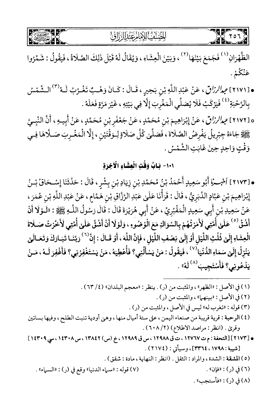 • [٢١٧١] عبد الرازق، عَنْ عَبْدِ اللهِ بْنِ بَحِيرٍ، قَالَ: كَانَ وَهْبٌ تَغْرُبُ لَهُ (¬٣) الشَّمْسُ بِالرَّحْبَةِ (¬٤) فَيَرْكَبُ فَلَا يُصَلِّي الْمَغْرِبَ إِلَّا فِي بَيْتِهِ، غَيْرَ مَرَّةِ فَعَلَهُ.