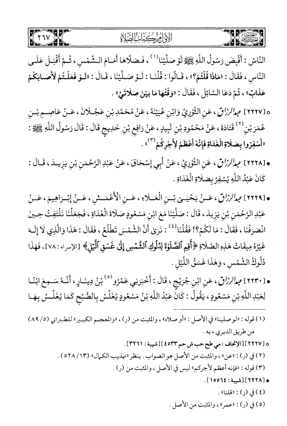 • [٢٢٢٨] عبد الرزاق، عَنِ الثَّوْرِيِّ، عَنْ أَبِي إِسْحَاقَ، عَنْ عَبْدِ الرَّحْمَنِ بْنِ يَزِيدَ، قَالَ: كَانَ عَبْدُ اللهِ يُسْفِرُ بِصَلَاةِ الْغَدَاةِ.