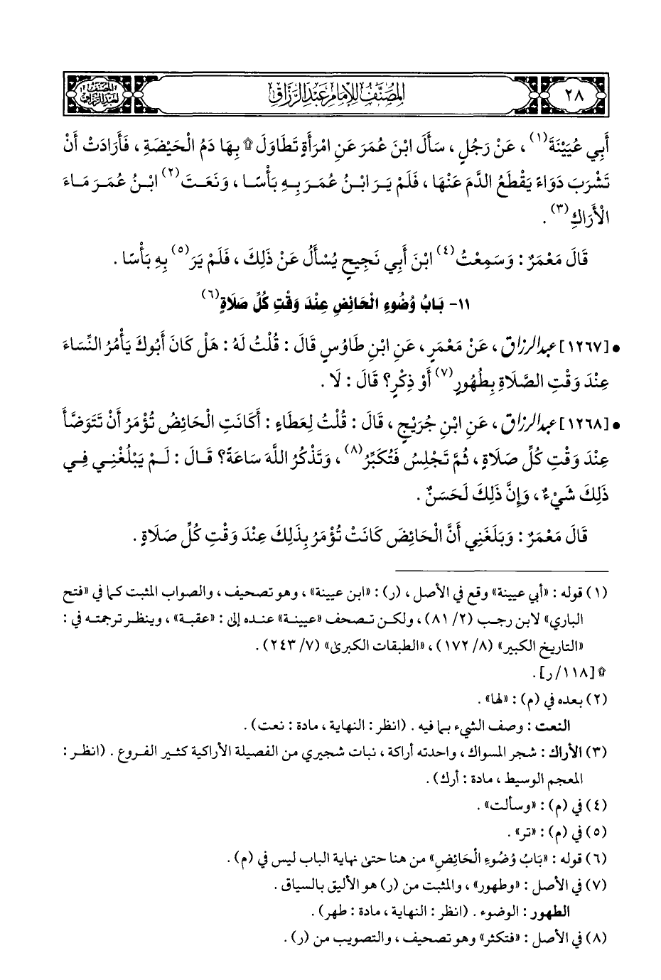 • [١٢٦٨] عبد الرزاق، عَنِ ابْنِ جُرَيْجٍ، قَالَ: قُلْتُ لِعَطَاءٍ: أَكَانَتِ الْحَائِضُ تُؤْمَرُ أَنْ تَتَوَضَّأَ عَنْدَ وَقْتِ كُلِّ صَلَاةٍ، ثُمَّ تَجْلِسُ فَتُكَبِّرُ (¬٨)، وَتَذْكُرُ اللَّهَ سَاعَةً؟ قَالَ: لَمْ يَبْلُغْنِي فِي ذَلِكَ شَيْءٌ, وَإِنَّ ذَلِكَ لَحَسَنٌ.