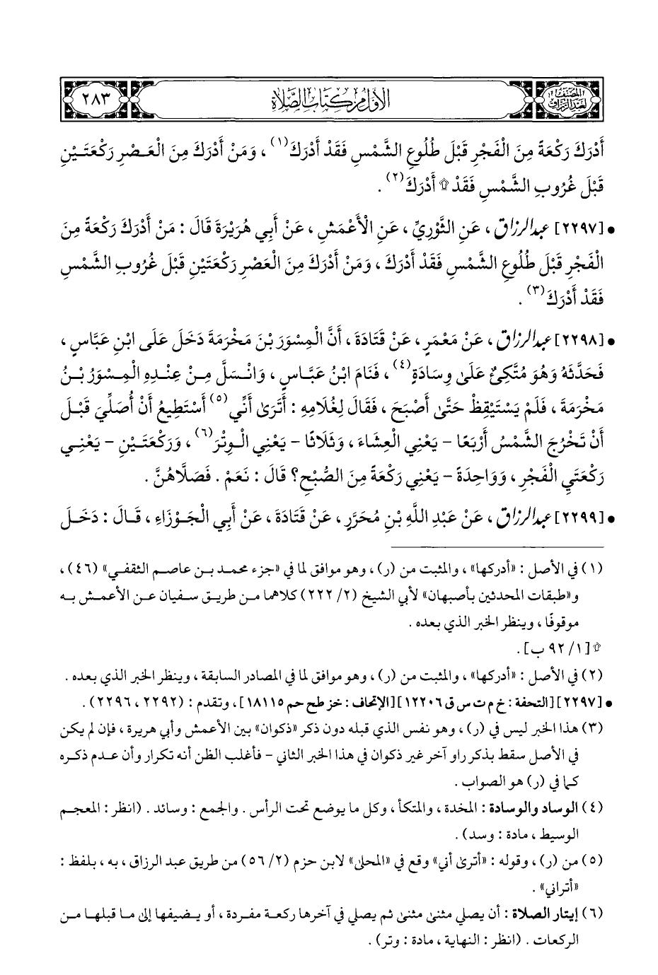 • [٢٢٩٧] عبد الرزاق، عَنِ الثَّوْرِيِّ، عَنِ الْأَعْمَشِ، عَنْ أَبِي هُرَيْرَةَ قَالَ: مَنْ أَدْرَكَ رَكْعَةً مِنَ الْفَجْرِ قَبْلَ طُلُوعِ الشَّمْسِ فَقَدْ أَدْرَكَ، وَمَنْ أَدْرَكَ مِنَ الْعَصْرِ رَكْعَتَيْنِ قَبْلَ غُرُوبِ الشَّمْسِ فَقَدْ أَدْرَكَ (¬٣).
