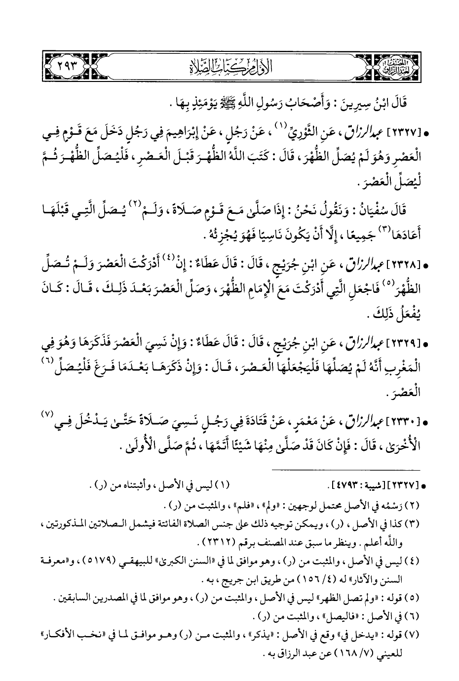 • [٢٣٢٧] عبد الرزاق، عَنِ الثَّوْرِيِّ (¬١)، عَنْ رَجُلٍ، عَنْ إِبْرَاهِيمَ فِي رَجُلٍ دَخَلَ مَعَ قَوْمٍ فِي الْعَصرِ وَهُوَ لَمْ يُصلِّ الظُّهْرَ، قَالَ: كَتَبَ اللهُ الظُّهْرَ قَبْلَ الْعَصْرِ، فَلْيُصَل الظُّهْرَ ثُمَّ لْيصَلِّ الْعَصْرَ.