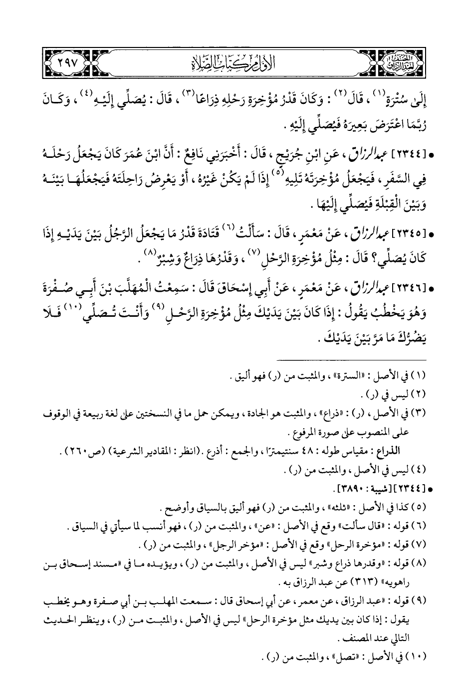 (¬٩) قوله: "عبد الرزاق، عن معمر، عن أبي إسحاق قال: سمعت المهلب بن أبي صفرة وهو يخطب يقول: إذا كان بين يديك مثل مؤخرة الرحل" ليس في الأصل، والمثبت من (ر)، وينظر الحديث التالي عند المصنف.