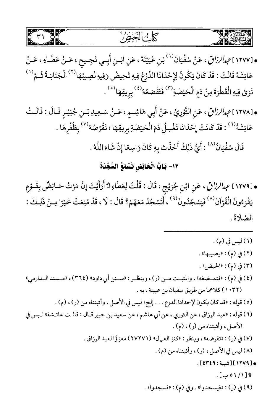 (¬٦) قوله: "عبد الرزاق، عن الثوري، عن أبي هاشم، عن سعيد بن جبير قال: قالت عائشة" ليس في الأصل، وأثبتناه من (ر)، (م).