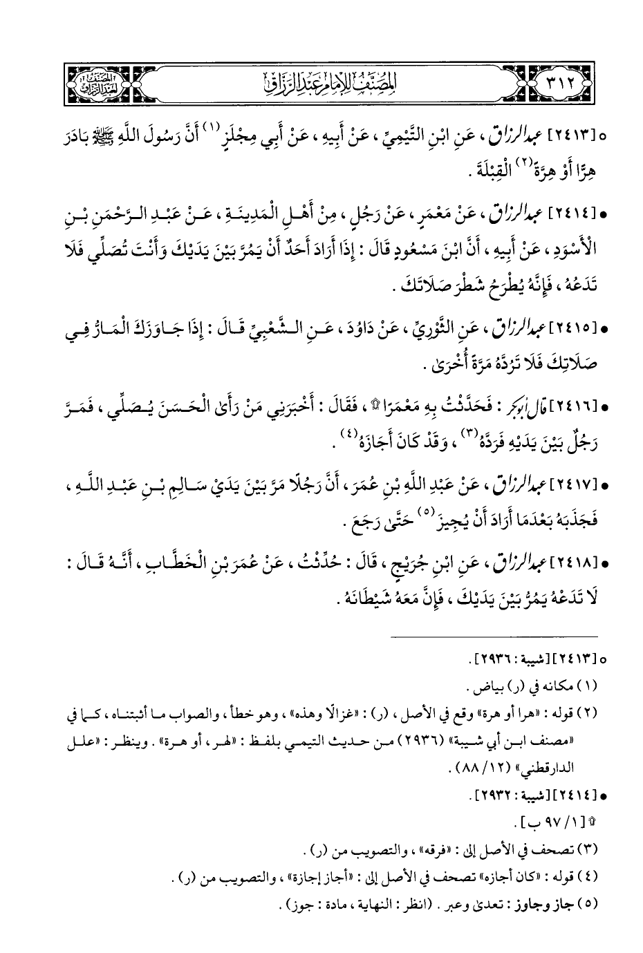 • [٢٤١٧] عبد الرزاق، عَنْ عَبْدِ اللَّهِ بْنِ عُمَرَ، أَنَّ رَجُلًا مَرَّ بَيْنَ يَدَيْ سَالِمِ بنِ عَبْدِ اللَّهِ، فَجَذَبَهُ بَعْدَمَا أَرَادَ أَنْ يُجِيزَ (¬٥) حَتَى رَجَعَ.