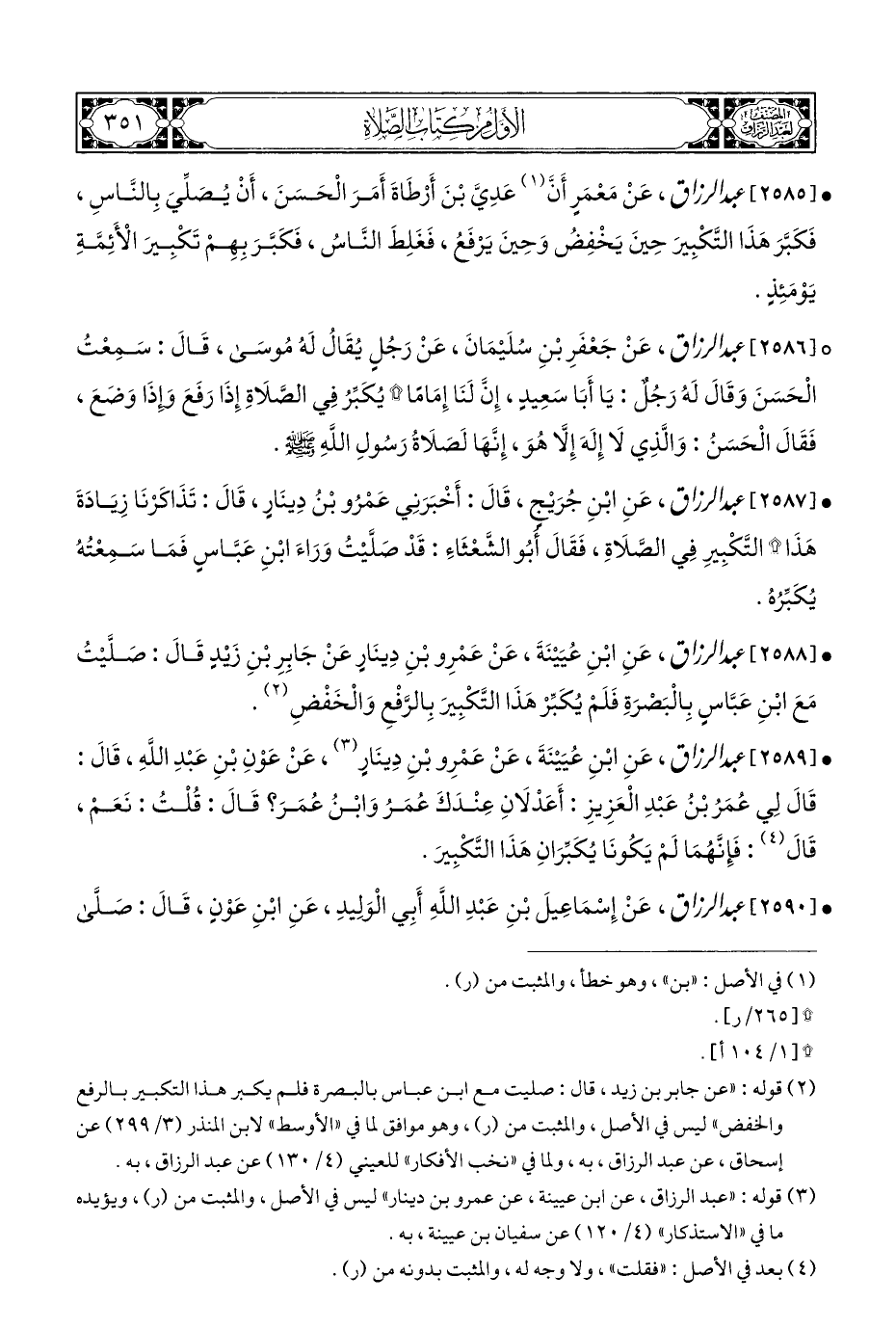 • [٢٥٨٨] عبد الرزاق، عَنِ ابْنِ عُيَيْنَةَ، عَنْ عَمْرِو بْنِ دِينَارٍ عَنْ جَابِرِ بْنِ زَيْدٍ قَالَ: صَلَّيْتُ مَعَ ابْنِ عَبَّاس بِالْبَصْرَةِ فَلَمْ يُكَبِّرْ هَذَا التَّكْبِيرَ بِالرَّفْعِ وَالْخَفْضِ (¬٢).