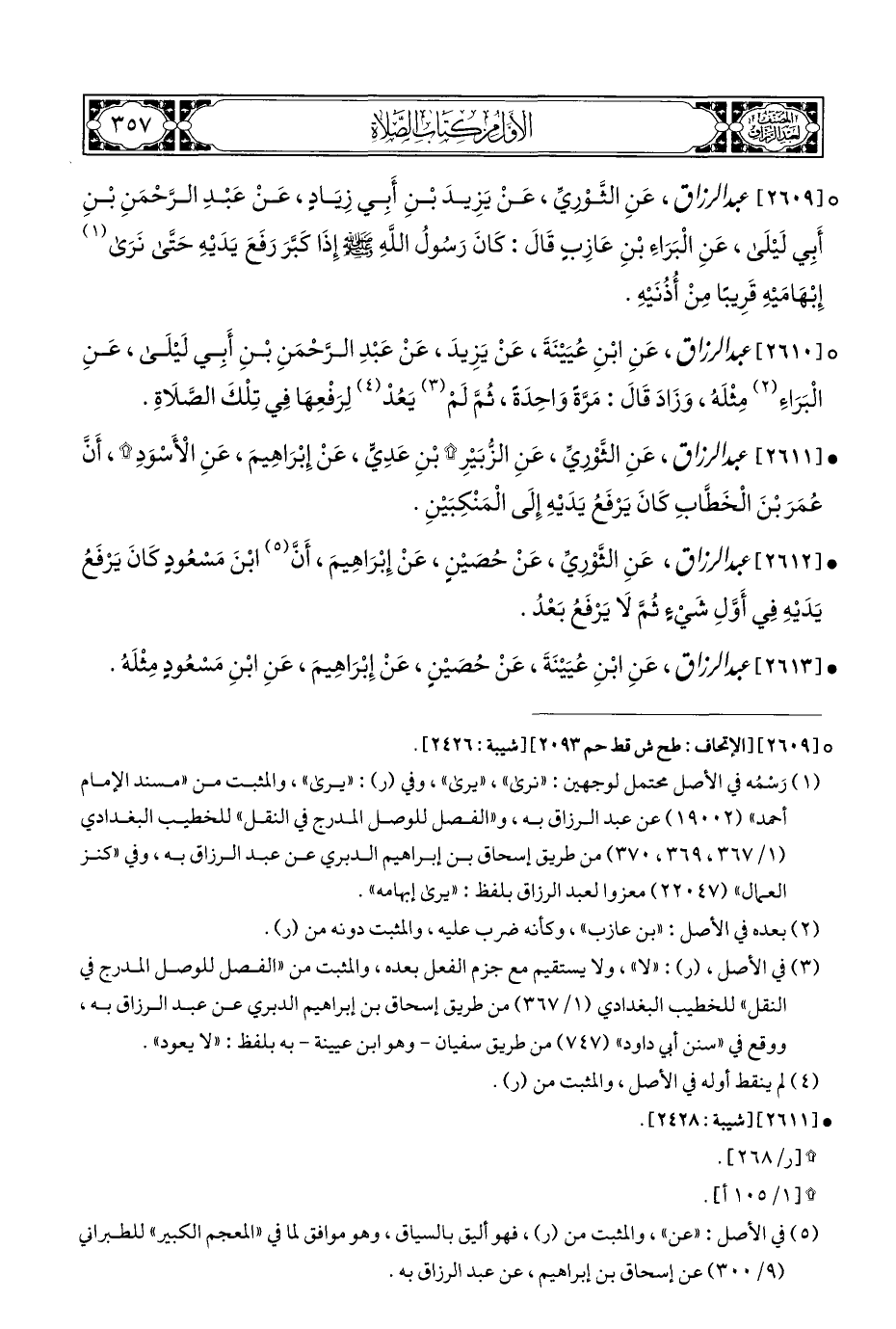 ° [٢٦١٠] عبد الرزاق، عَنِ ابْنِ عُيَيْنَةَ، عَنْ يَزِيدَ، عَنْ عَبْدِ الرَّحْمَنِ بْنِ أَبِي لَيْلَى، عَنِ الْبَرَاءِ (¬٢) مِثْلَهُ، وَزَادَ قَالَ: مَرَّةً وَاحِدَةً، ثُمَّ لَمْ (¬٣) يَعُدْ (¬٤) لِرَفْعِهَا فِي تِلْكَ الصَّلَاةِ.